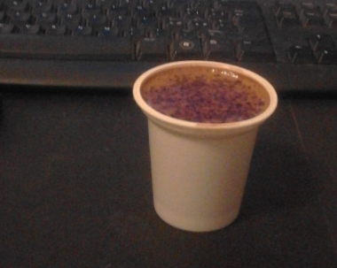 caffè in polvere fatto con grande cura e dedizione (sottolineo che è fatto con l'acqua naturale presa dal frigo, in un vasetto dello yogurt usato e sbagliando ampiamente la quantità di polvere necessaria).